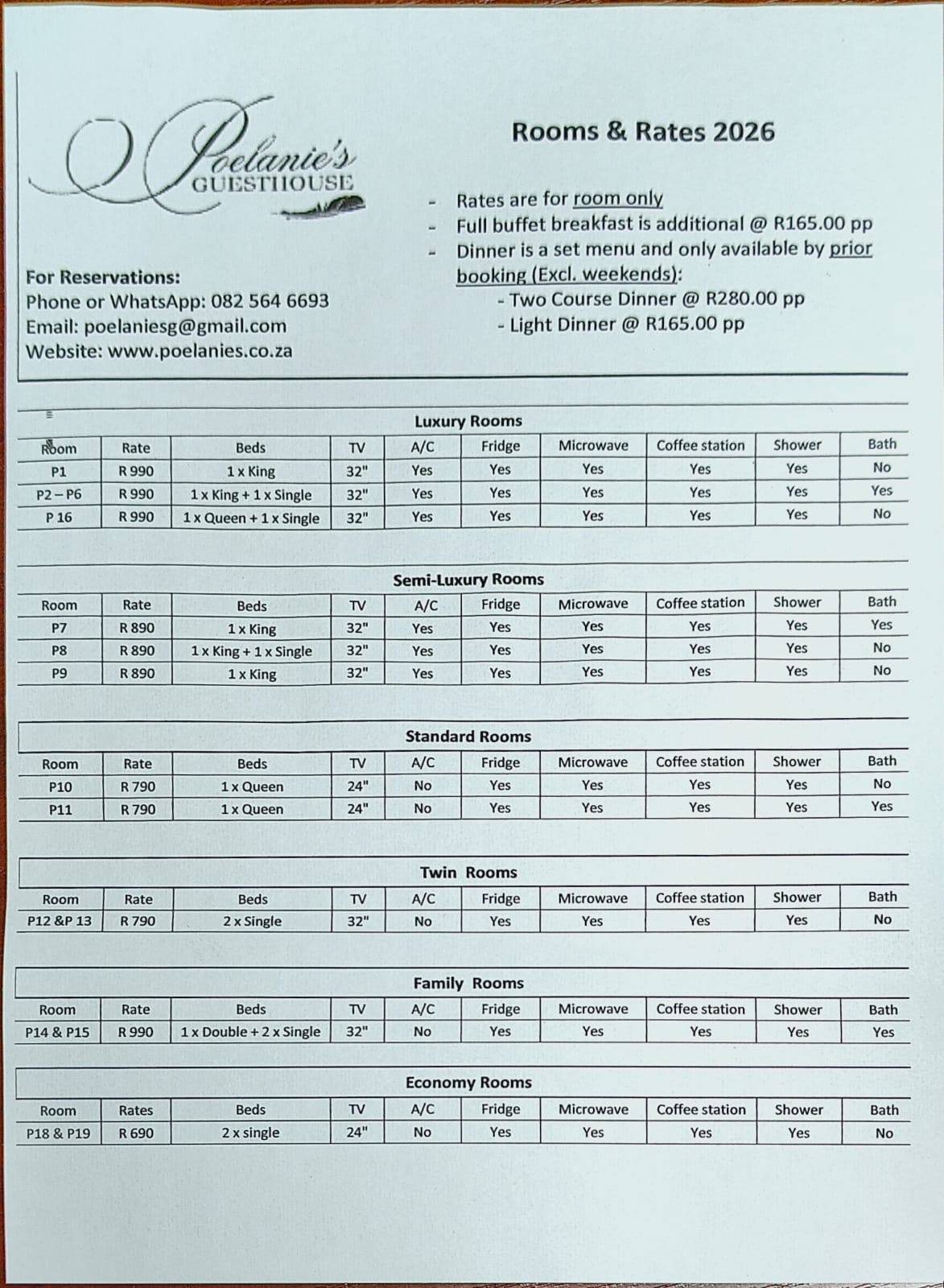 Room Rates for Bed ONLY!!!